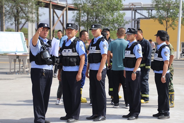與此同時,作為事故罐區(qū)外圍安保的主力,高新區(qū)公安分局特巡警大隊聯(lián)合烏斯太派出所,組成3個應(yīng)急處突分隊,負(fù)責(zé)巡邏防控、道路管控和現(xiàn)場勘查等職責(zé),處突民警在公安分局指揮中心和現(xiàn)場指揮部的統(tǒng)一領(lǐng)導(dǎo)下,攜帶防化裝備和武器警械,迅速在外圍路口及卡點(diǎn)進(jìn)行警戒封閉和巡邏防控,防止無關(guān)人員闖入和不法分子實(shí)施違法犯罪活動,為確保搶險救援順利開展做好最充分的支援和保障。此次演練共出動消防救援車車輛18輛,警車17輛,120急救車7輛,人員400余人,參與聯(lián)動單位10余家,實(shí)戰(zhàn)演練得到了現(xiàn)場領(lǐng)導(dǎo)的一致好評和充分肯定。