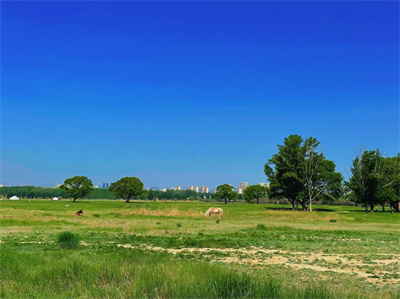 賽汗塔拉城中草原藍(lán)天草地相依。(來(lái)源:包頭市生態(tài)環(huán)境局)