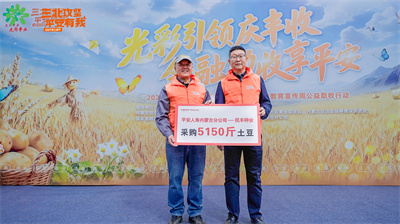 金秋的陽光灑向田野,豐收的喜悅隨風(fēng)蕩漾。在第八個(gè)中國農(nóng)民豐收節(jié)到來之際,平安人壽內(nèi)蒙古分公司在內(nèi)蒙古自治區(qū)黨委統(tǒng)戰(zhàn)部、內(nèi)蒙古自治區(qū)農(nóng)牧廳的指導(dǎo)下,聯(lián)合內(nèi)蒙古自治區(qū)光彩事業(yè)促進(jìn)會(huì)、內(nèi)蒙古自治區(qū)品牌建設(shè)促進(jìn)會(huì),在卓資縣民豐種業(yè)土豆種植基地隆重舉行“光彩引領(lǐng)慶豐收 金融助收享平安”2025年內(nèi)蒙古自治區(qū)農(nóng)產(chǎn)品推介暨金融教育宣傳周公益助收行動(dòng)。