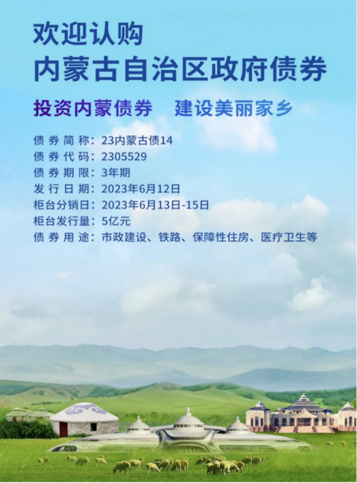 從官方渠道獲悉,內(nèi)蒙古自治區(qū)將于6月12日發(fā)行2023年度首批地方政府柜臺(tái)債券。
