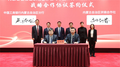 2023年10月19日上午,中國工商銀行內(nèi)蒙古自治區(qū)分行、各盟市分行與內(nèi)蒙古自治區(qū)供銷合作社、各盟市供銷合作社舉行全面戰(zhàn)略合作簽約。