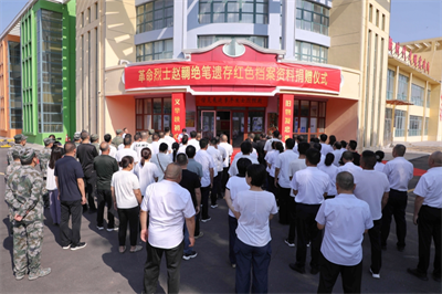 趙輖紅色檔案資料復(fù)印件入藏趙輖烈士生平事跡展覽館并陳列于中心展柜。全體人員參觀趙輖烈士生平事跡展覽館,瞻仰新入藏的趙輖絕筆遺存,重溫趙輖烈士的革命故事與英雄事跡。