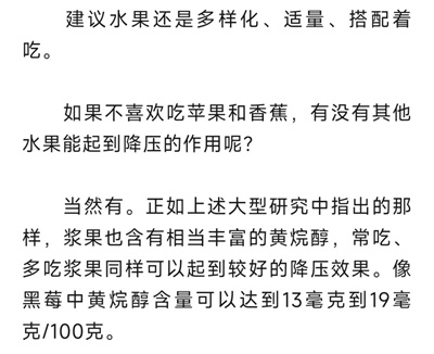 這項(xiàng)由我國(guó)學(xué)者完成的研究結(jié)果發(fā)現(xiàn):高血壓患者中常吃(每周吃3~6次)香蕉或蘋果的人,全因死亡率降低24%~40%;而當(dāng)患者對(duì)兩種水果攝入頻率都較高(每周吃3~6次)時(shí),全因死亡率下降了 43%。同時(shí),該研究還發(fā)現(xiàn),常吃其他水果,如梨、菠蘿或葡萄,與高血壓患者的全因死亡率沒(méi)有顯示出顯著關(guān)聯(lián)。