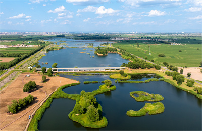 呼和浩特市玉泉區(qū)大黑河郊野公園千島湖景區(qū)碧波蕩漾,星羅棋布的湖島與藍天白云相映成趣,構成一幅靈動的自然畫卷。(攝影:丁根厚)